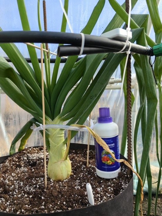 At night, the temperature outside dropped to -13 degrees Celsius, but the temperature in the greenhouse did not drop below 7 degrees Celsius. The onion continues to grow. This is my second attempt to grow a giant onion, last time the largest onion weighed 3325 grams. I wonder how much weight you'll get this time.,