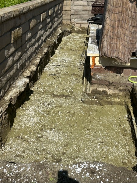 For the next phase, I took my broad Fork and broke up the bottom of the trench. I sprayed it down with a hydrogen peroxide solution mixed at a 50:1 ratio. It will be a few days before I get the soil test back, but in the meantime, I layered in a good amount of perlite, a little bit of alfalfa meal, and a little bit of kelp meal. I also sprinkled in a little gypsum in the bottom of the hole. I don't need a soil test to tell me I will need all of these things in some quantity.