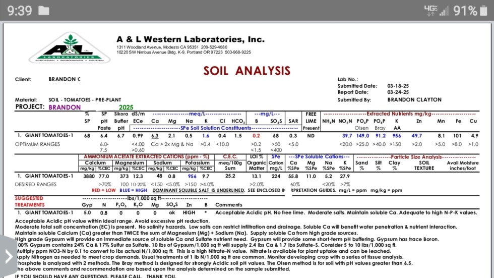 I've had good luck getting plenty of megas and large tomatoes in the spot where this soil test was taken. We get heavy winter precipitation which is probably why boron is so low. I will try to add a few ppms of boron to any further waterings I do.