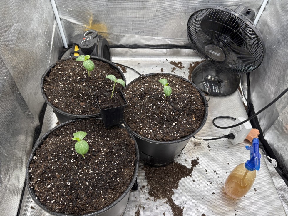 222 McMillin watermelons have been potted up 5 gallon pots.