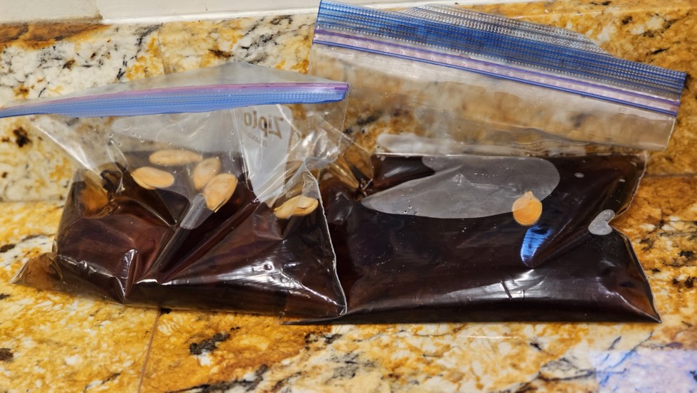 Seeds soaked in a very light powdered kelp solution for 4 hrs at room temperature.