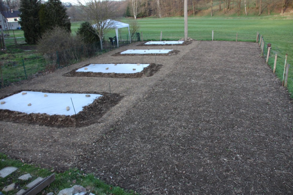 Patch today :) Next step of patch prep finished. Last weekend we've had some good rain, and now the forecast looks like some sunshine the next couple of days. Just about the right time for getting the plant sites covered with clear plastic, now the sun can do some good work in terms of soil warming. BTW: As some of you may guess, there will be four plants this year. Bonus info: Two of them will be greenies again. :)