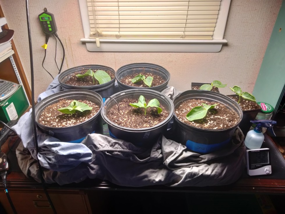 Girls are doing ok. The 2032 Scott & the 1991 Thompson have curling cotyledons. I'm presuming I gave them a little too much water recently.