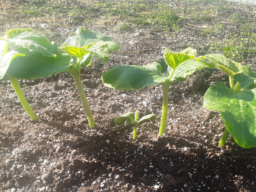 The pair of 2054 Stricklers went in the main patch, they'll be competing for a spot with four of my direct seeded F2 squashkins, which are now emerging finally.