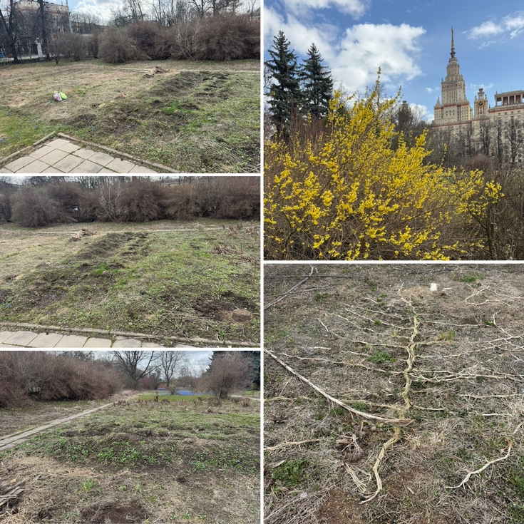 I was at the botanical garden today, picking up trash from the garden. Surprisingly, over the winter, the plants turned to dust, leaving only a skeleton drawing of giant pumpkin plants. It's like a dinosaur dig. And at the same time, I calculated the area of the garden. It turns out to be 170 square meters, in feet it is just over 1800. Accordingly, I need to understand now how much humus and compost to add. The botsad administration will send the soil to the laboratory for analysis in a few days. I hope this soil analysis is done quickly. Although we are now experiencing a return of cold snap and snow. Therefore, there is no hurry. And most importantly, I need to figure out how to place 4 giant pumpkins, two of them squash, as well as one giant marrow. Is the south-north-west-east direction important for plant growth? And what is the best way to arrange on this rectangular area so that all the plants fit?