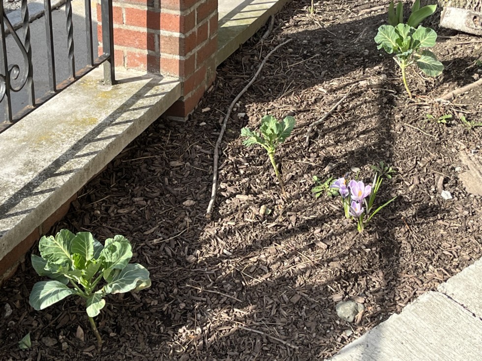 The cold tolerance of Collard Greens is very impressive. These three survived the winter and are thriving now.
