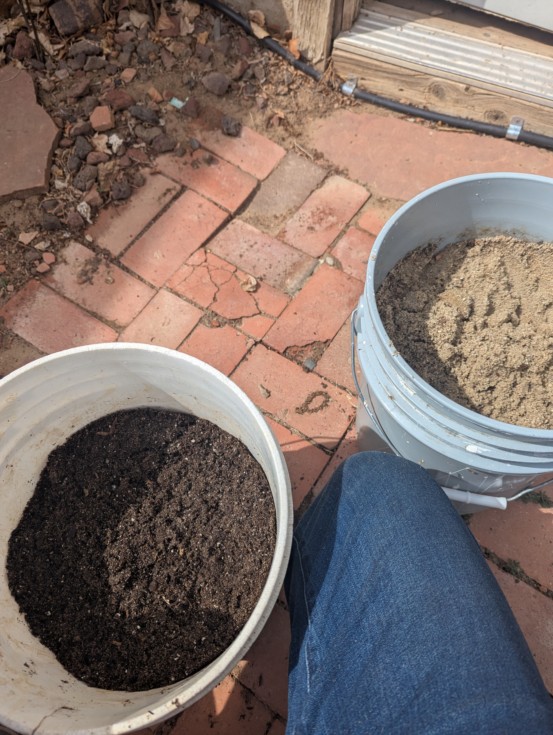 Bit behind on my diary entries. Making my own starter mix this year. Sand, soil, touch of fretz.