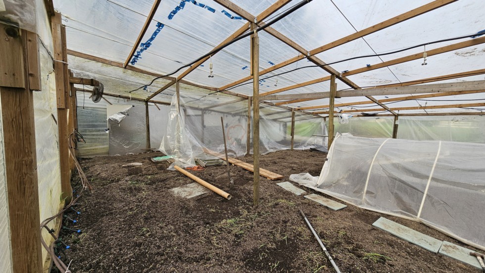 I'm starting to partition the greenhouse into a smaller space so that the heaters and CO2 generators won't need to work so hard when the hoops are removed.