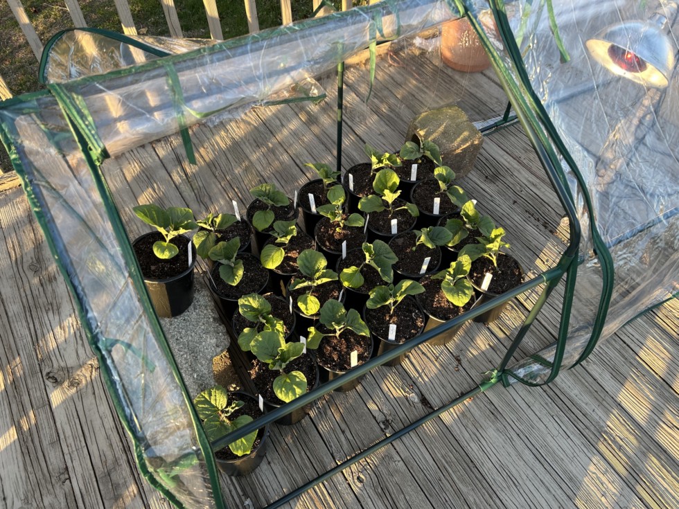 My army of giant eggplants in temp controlled mini greenhouse.