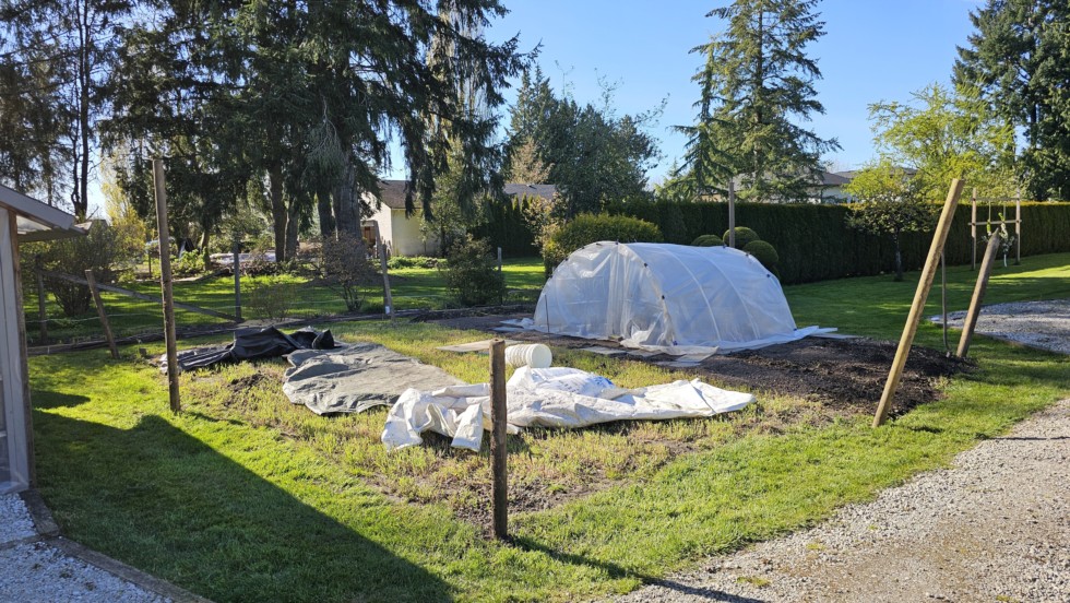 This the start of the patch for the 3rd 2144 Barron. The whole patch will be covered with a single piece of poly to act as a semi greenhose with open sides. It's amazing how much heat is generated by just having a cover over the patch. It also prevents a heavy rainfall from imacting the plant/friut . The treated fence posts have been installed and the tops will be connected with ropes to support the poly. I will post progress pictures as I proceed. I used this method to grow a 1632 lb pumpkin a few years back.