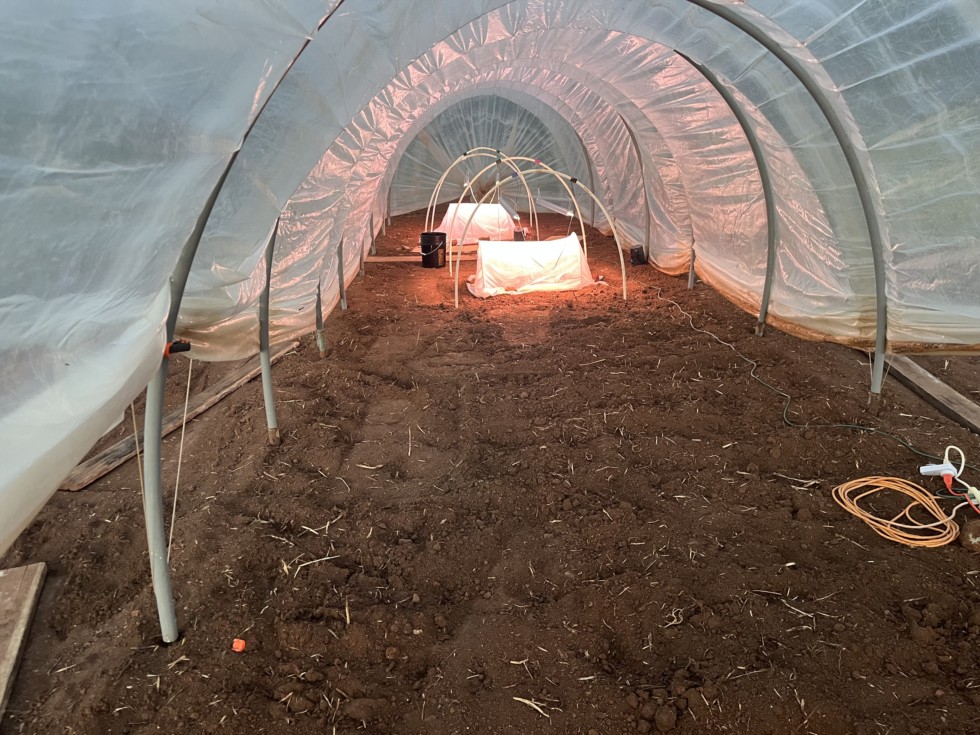 Plants were tucked into the ground last Friday. I cover them in Agribon for a couple of weeks because I have extreme cucumber beetle pressure and the beetles will destroy seedlings even inside the greenhouse. I've added some grow lights to the greenhouse this year to see if I can push the plants a bit. Spot 1 is planted with 2 2465 Dawson, spot 2 has a 2198 and 2154 Sperry, and spot 3 has a 2147 Marshall and 2390 Urena. Will cull down to the best 3.