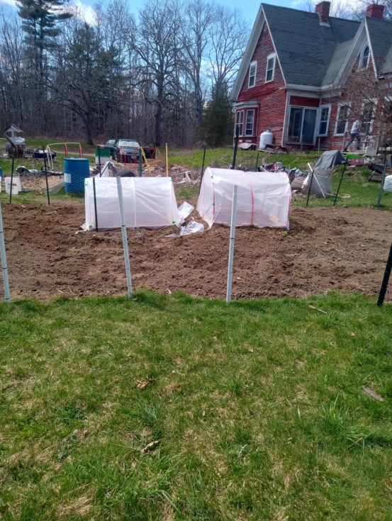The hoops are up in patch one. 2211 Connolly and the 1955.5 Connolly seedling are ready to go outside.
