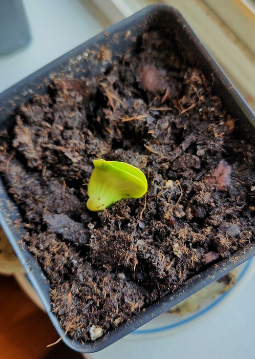 The first of two 1837 Van Houtte seeds I am germinating broke ground today.