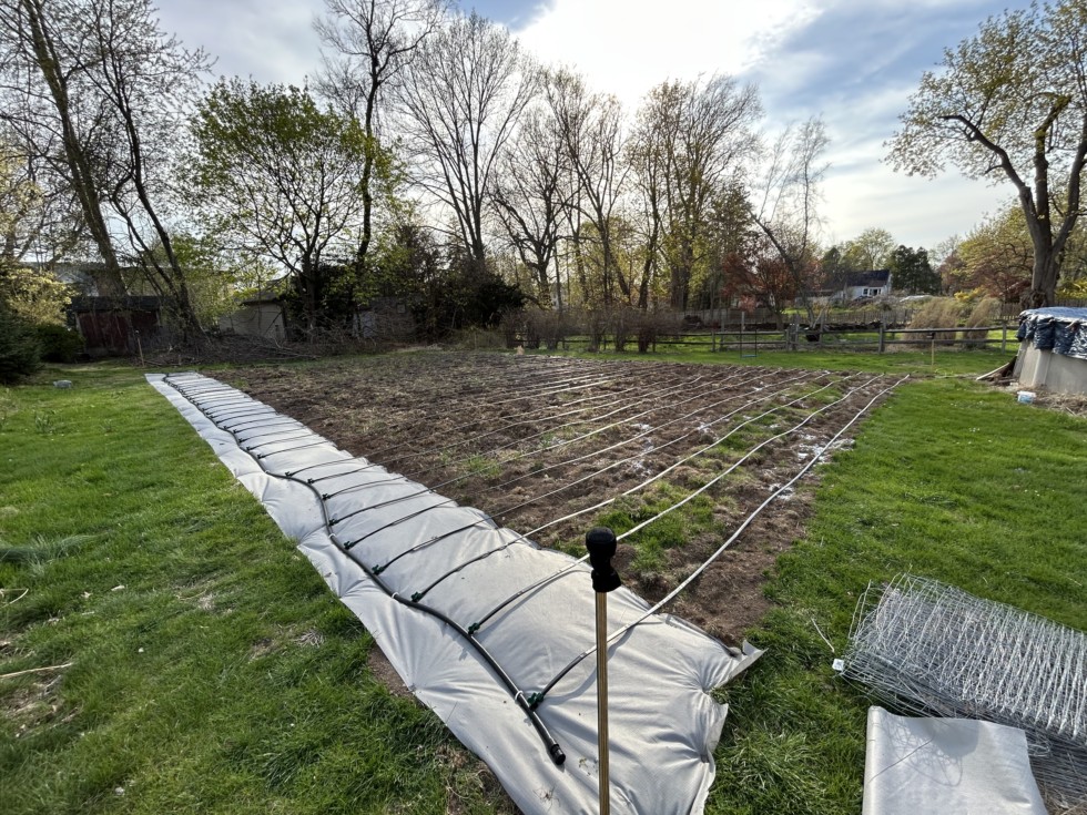 Got my drip line set up. Each branch has its own flow valve. I put the main line on a sheet of weed fabric to avoid any future issues with weeds growing around the valves.