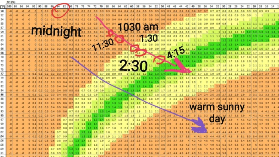 Here I've marked the vpd in the pumpkin hut at midnight. Its slightly off the chart!