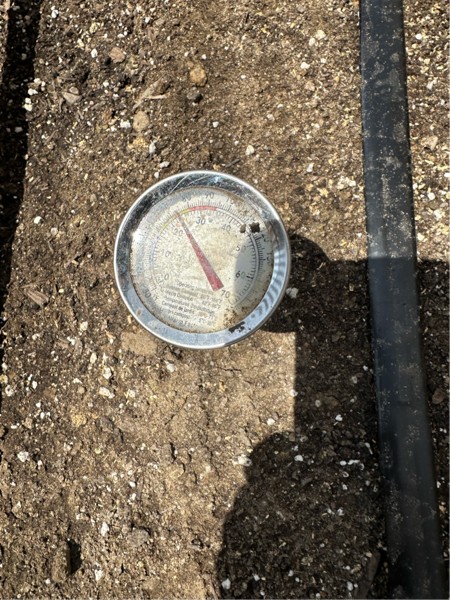 I measured the soil temperature in each area- the new patch is under 40% shade cloth. Soil temperature was about 73-74 degrees.