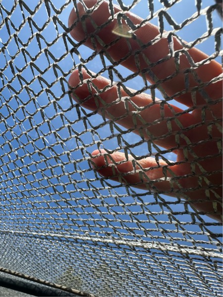 This is what I believe is the culprit- old and stretched out shade cloth. It doesn't really look worn out per se, but this 30% aluminet fabric has been stretched so many times that it's lost its effectiveness. Look how porous it is!