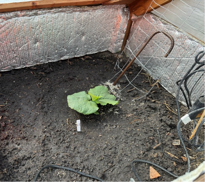 Transplanted the 102 Crews long gourd. Was going to make a dedicated shack for it but here we are. Only so much time. Couldn't find my little trellis either. Adapt. Improvise. Overcome.