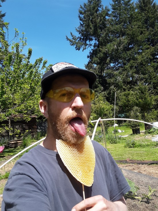 Who wouldn't want delicious honey so conveniently close to their mouth...?
