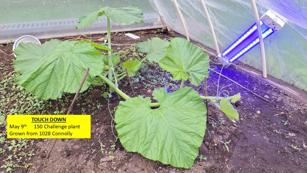 All 4 of my Giant Pumpkin plants (1028 Connolly, 2465 Sperry, 2551 Ford, 2471 Noel) have touched down (sort of). (SEE NEXT 3 POSTS) They are figuring out how to run on the ground without the main vine jumping too much. It takes a few days for the plants to sort things out. Now I need to get in there and weed the soil.