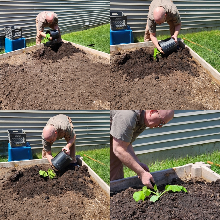 My wife documented the seedling placement yesterday with this series of photos. Forecasted temperatures predicted 41 degrees overnight. It's 56 degrees at 8:30 a.m. as I type this. I'll be heading out shortly to check on it.