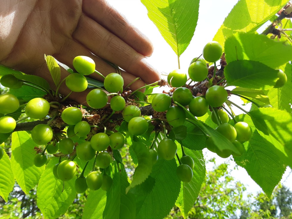 Despite the light frost we've had the best cherry growing weather I've ever experienced. The air temp near the ground level is colder than the air temp at tree level? Or... cherries are more frost resistant than pumpkins and potatoes...