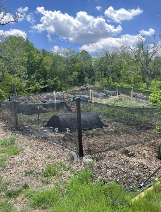 Removed plastic from huts(still covered with shade cloths for a few more days), and installed 6' wind/shade cloth fence.