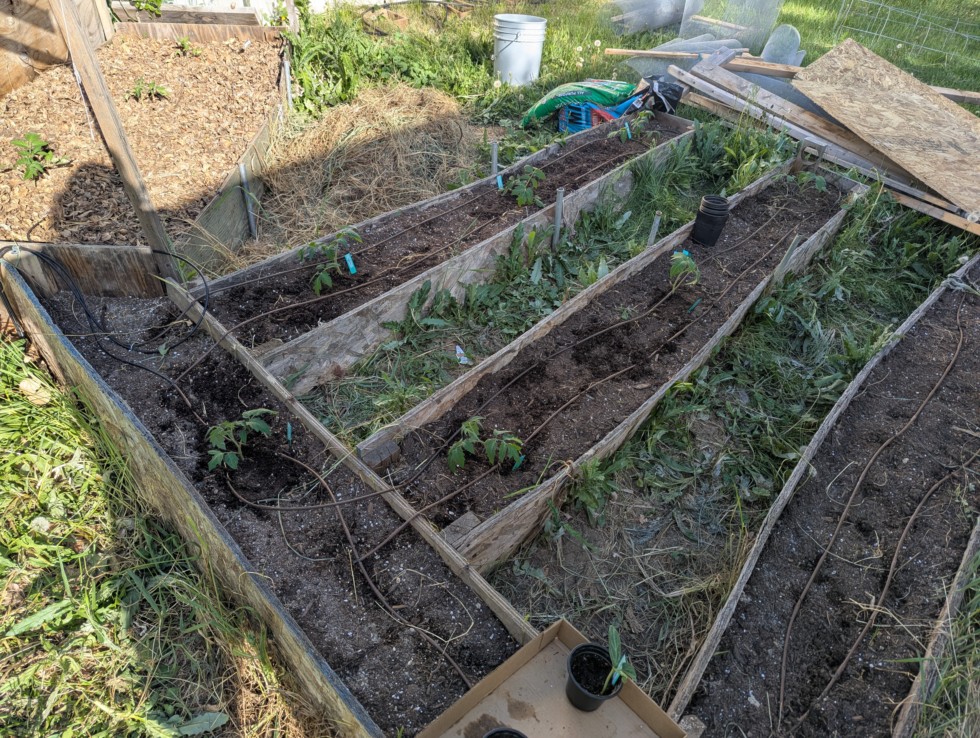 Finally maters in the ground. It took longer to fix everything I neglected last year since I had to move from this patch to the other side of the house. Now if I could just find a bit of free time I can finish the list of the seeds I started and the final ten I picked. Maybe tomorrow. Sigh