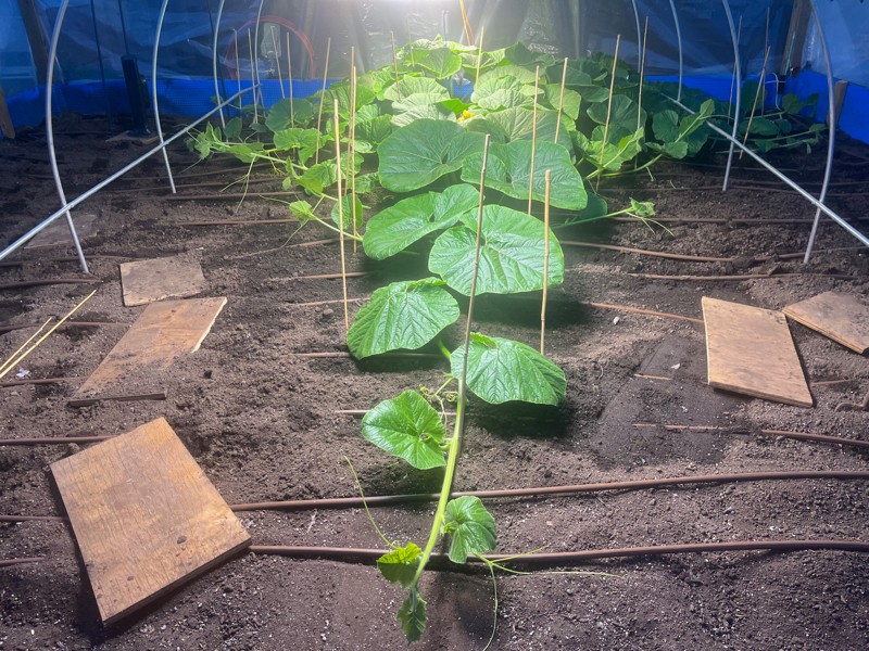 My main vine tip is at 18 feet now and growing about a foot a day. I terminated my first secondary today at about 9 ft from the stump. I built a 18ft wide greenhouse and it is about 28 ft long. Hoping for another female to show up on the main.