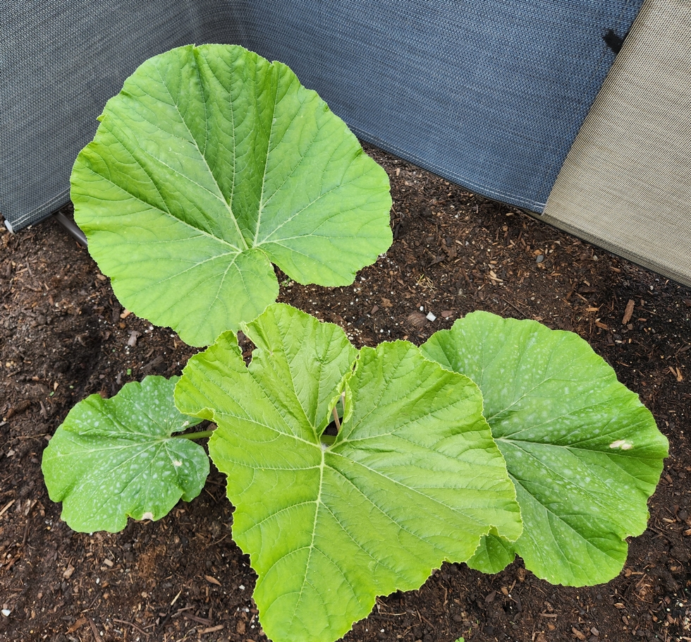 I spent the past week visiting my family in Missouri, so the pumpkin had to fend for itself in Michigan. The temps were in the high 30's one night and we had frost warnings two nights. I came back to 1" of rain in the rain gauge, so not being here to water wasn't an issue at all. It dies look like the plant has two leaves that might have gotten a little too cold, but this week should help grow out the plant a lot. I counted 8 different places where leaves and vines are growing, so by this time next week the pumpkin plant should look entirely different.