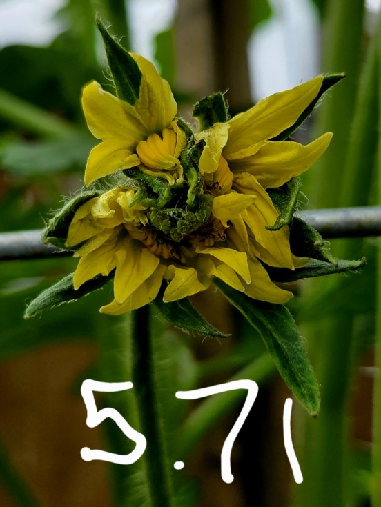 Close up of the 5.71 mega-bloom. Interestingly, the stem is lanky, ~5.5" long. This plant has all sorts of weirdness going on. Not sure if that's a good or bad thing yet.
