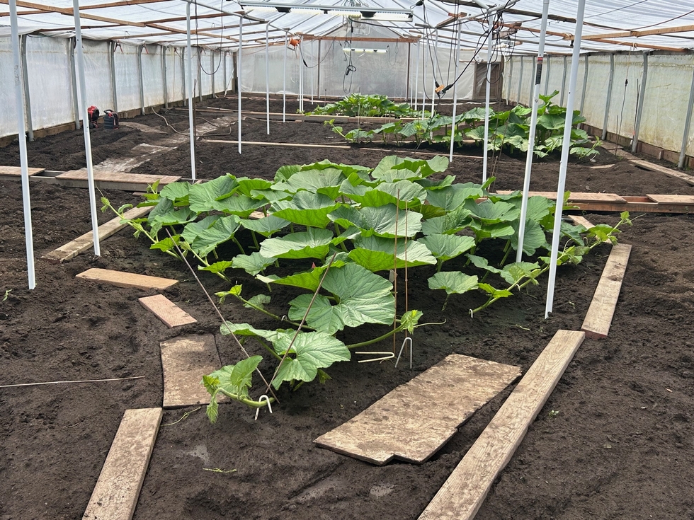 Ok, it is time for a little record keeping. This is my 2465 Sperry with a 14.5 foot long main vine. This plant has huge, floppy leaves which are different from all my other plants. This trait comes from the 1832 Graham (I know this because I grew one two years ago). My only concern is that it suffers from the heat at lower temps than my other plants. I like to run hot, but this plant is forcing me to keep my greenhouse temps down a bit. This has been my best plant from the beginning & I am expecting great things from it!