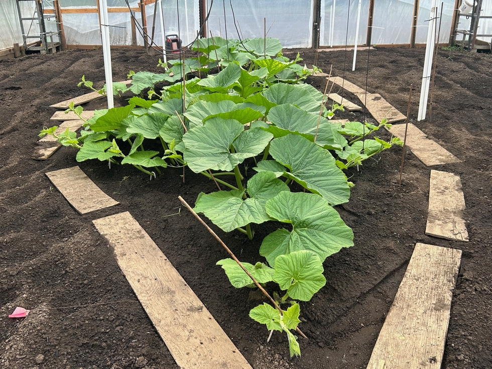 This is the 2301 Pugh growing in my small greenhouse. It has a 10.5 foot long main. It never had the luxury of a heated cold frame due to power constraints, and it has been just a bit slower than the other plants. It is a long season with a lot of time left to go, so I still have high hopes for this plant!