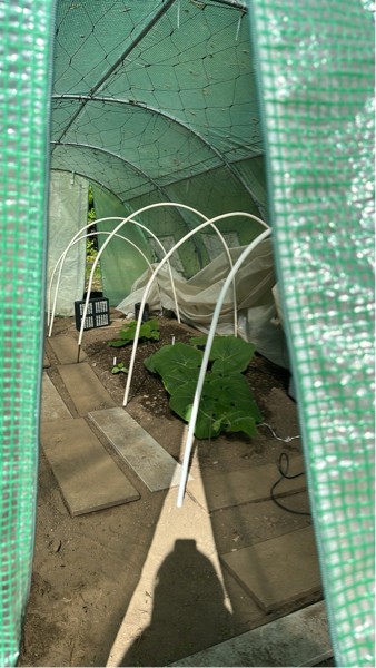 Well today has been quite the work day. I woke up this morning and walked out to the patch. I opened up the door panel flap and noticed something. I noticed that there was a heck lot more light coming into the hoop house with the flap open (you can see the sun shadow) than when it is closed! There is full sunshine on the patch at this time. I came to conclusion that the green plastic on this hoop house is providing a SIGNIFICANT amount of shade to the inside of the hoop house! There's still light coming in but look at that difference! It's a bit over dramatic in the picture but there's a huge difference. I haven't had a secondary problem like this when I was using the same hoop house last year but last year we had much more sunnier days in May! I believe that the lack of light inside the hoop house is part of the problem with my stunted and non growing secondary's that I've had a big problem with on the plants I pulled last week. I don't believe it's 100% the cause but 60% or more potentially! (See next post)