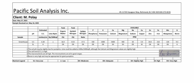 Since I'm commenting on everyone's soil analysis here is my recent ones. One is for my greenhouse with the 2144 Barron and the other is for my boulevard 2183 Mendi. Both plants seem to be doing well, I just need to keep my hands off them as I am doing most of the danage by manipulating vines, leaves and such. Have my first female flower on the 2183 and pulling off several females a day on the 2144 on early secondaries.