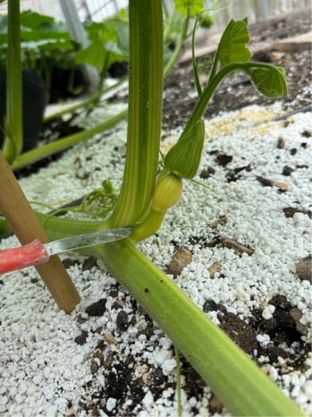 For us this is about the right time to remove the one leaf by the pumpkin. I know some people will leave these leaves on but they tend to scratch the skins which can become nasty scars.