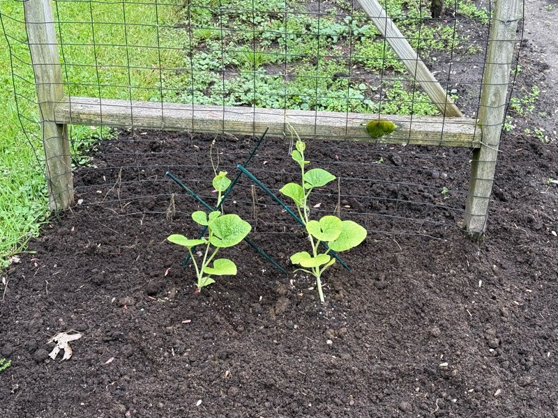 The 144 MacDonald long gourds are starting to look a little bit greener.