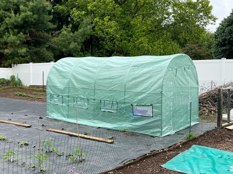 Setup the mini-greenhouse for my giant tomatoes this year.