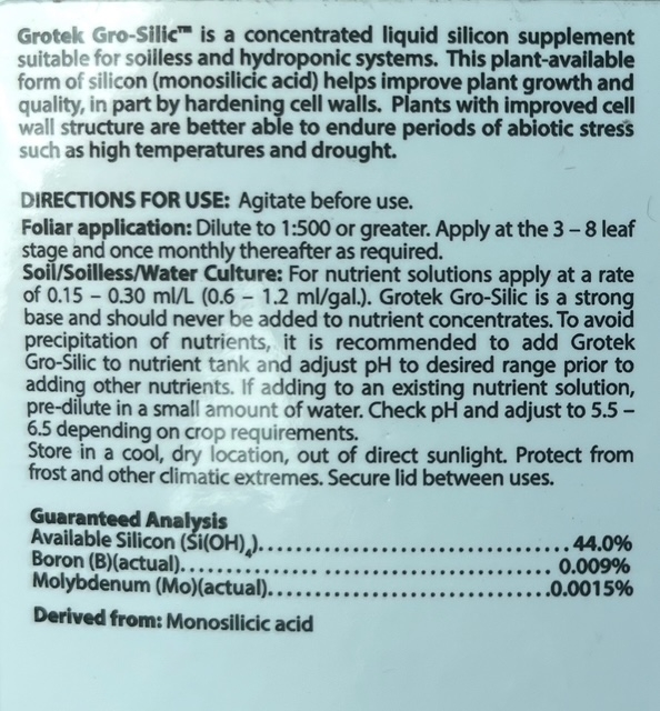 Does anyone have any experience using monosilic acid, it was recommended to me for plant health and for the prevention of powdery mildew which is a big problem here on the Pacific Northwest coast with our cool summer nights. I currently do a weekly spray of all the leaf surfaces and stems with a solution of powdered sulphur and hygropunch (cinnamon/thyme/soybean oil solution) which has worked pretty well in the past.
