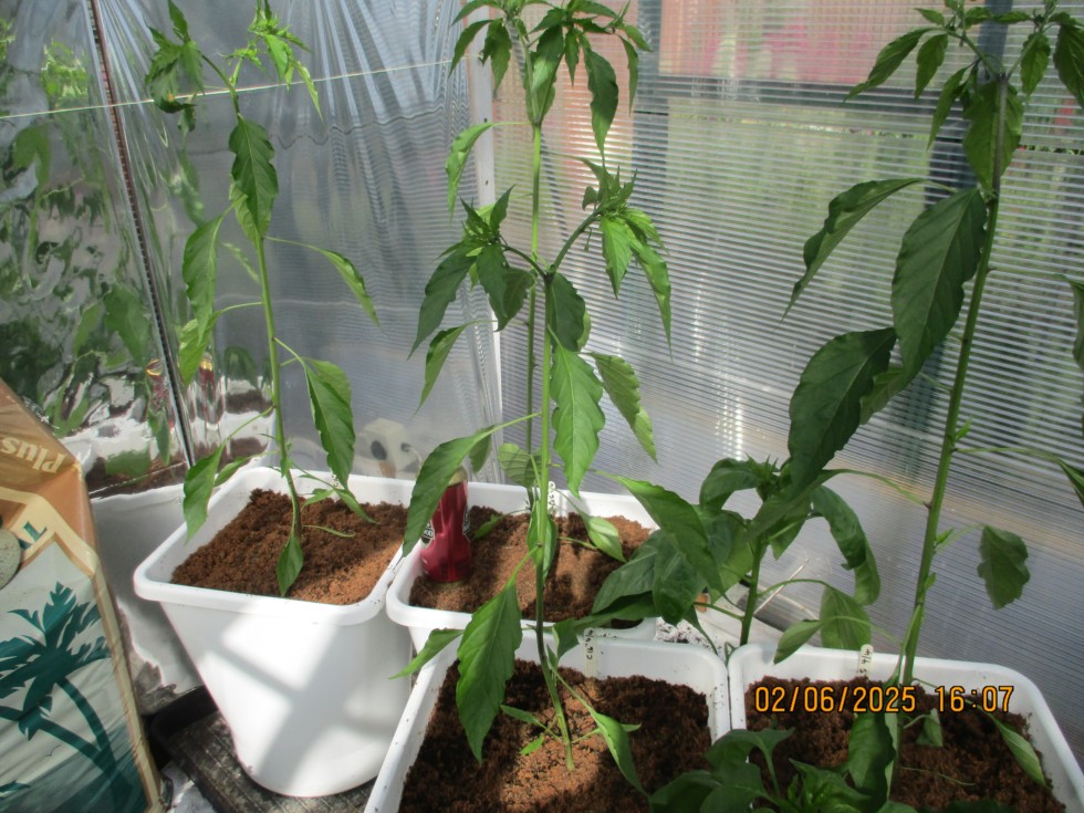 Chilli plants potted into 25lt. white pots to be set on Autopot system when rooted.