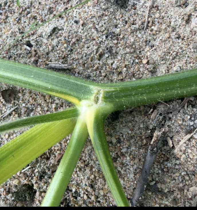 3 of 6 of the plants this year had this type of split on the main. This is the 2641 Paton and I'll likely leave/manage to it. The 2069 Stelts, I cut and started a new main, and the 2357 Jacobus.I'm waffling on. Main vines got very thick and tip went 2ft high for about a week and the vines couldn't support the weight.