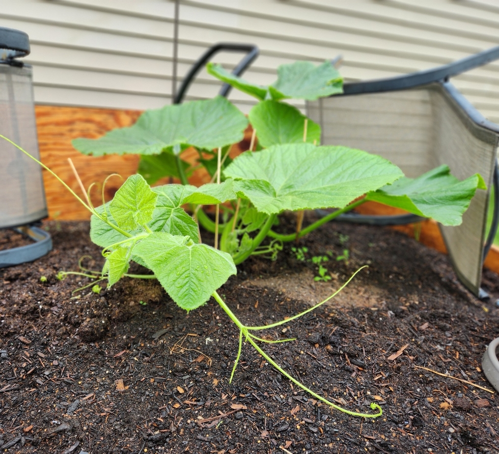 We had 1 1/4 inches of rain last night and some light rain remains this morning. Thanks to some hillbilly engineering the pumpkin stayed dry overnight. I removed everything this morning, so I don't need to water today.