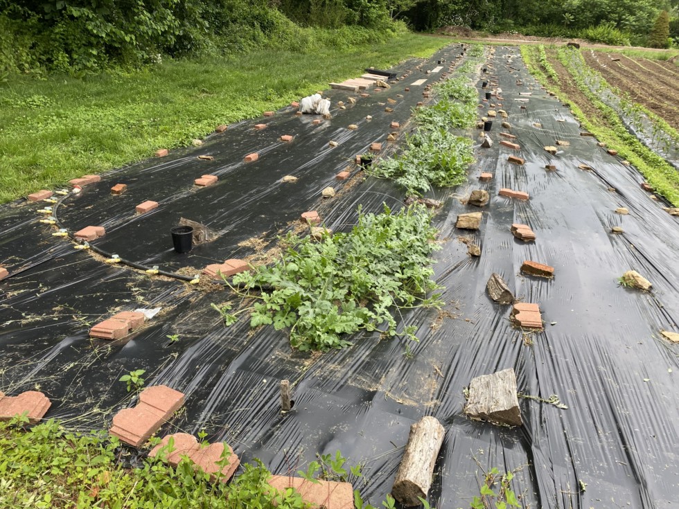 7 giant watermelons and 3 giant cantaloupes. The weather has been terrible, so I am not as far along as in past years.