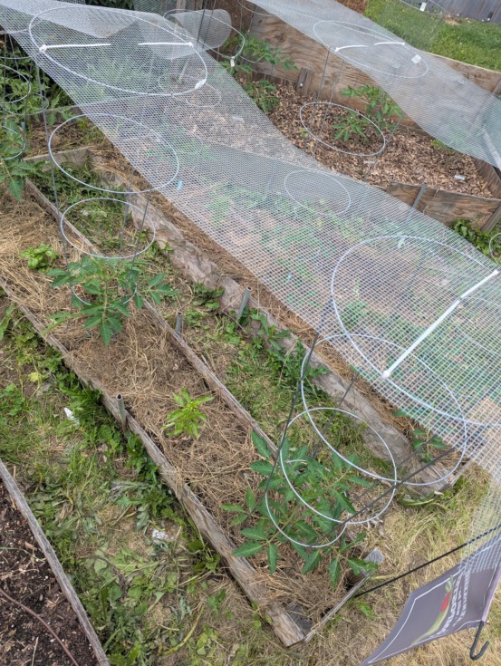 Finally found some time over the last several days to spend time in the patch. The hail protection is now complete. The sun the last couple days have made an amazing difference. The plants really perked up.