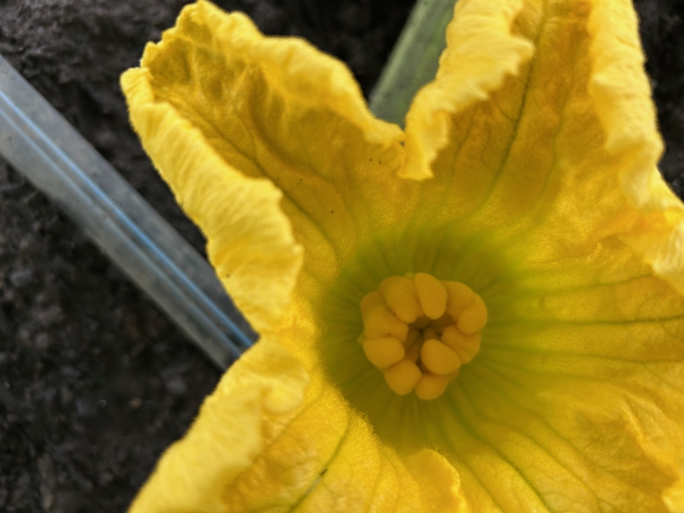 There was some success this morning. This is the female on my 2301 Pugh. It is located at the 18 foot mark & has 24 secondaries before it. I pollinated it with my 2465 Sperry, which didn't seem to have a lot of pollen on the 5 males I used. It could be a keeper.