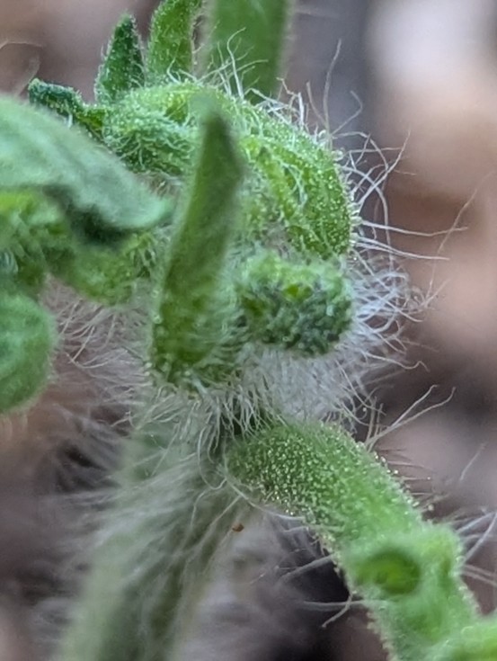 This is the photo of the second sucker... It has the tinyest megabloom on it. Now I have a method to choose the best second main vine. Yay