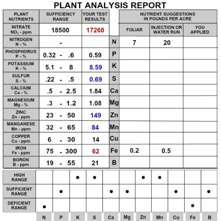 Tissue test on tomatoes. These tests dont tell the whole story but they do tell some of it... I would have guessed the iron was high and the sulfer was low... the boron isnt adequate it should read as low... Some plants low in magnesium too but that mat be a good thing because I think it slows the ripening. Nice to know the nitrogen isn't too crazy high, I think nitrogen is another such nutrient where less can be more.