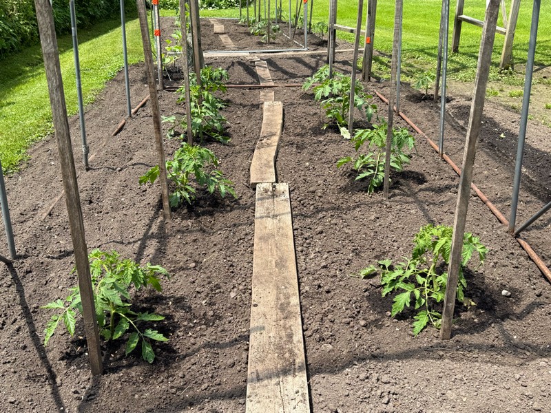 Tomato alley south is looking good. This is where our fair pumpkin was grown in the past. Our 6.48 Young appears to be the most vigorous grower here so far.