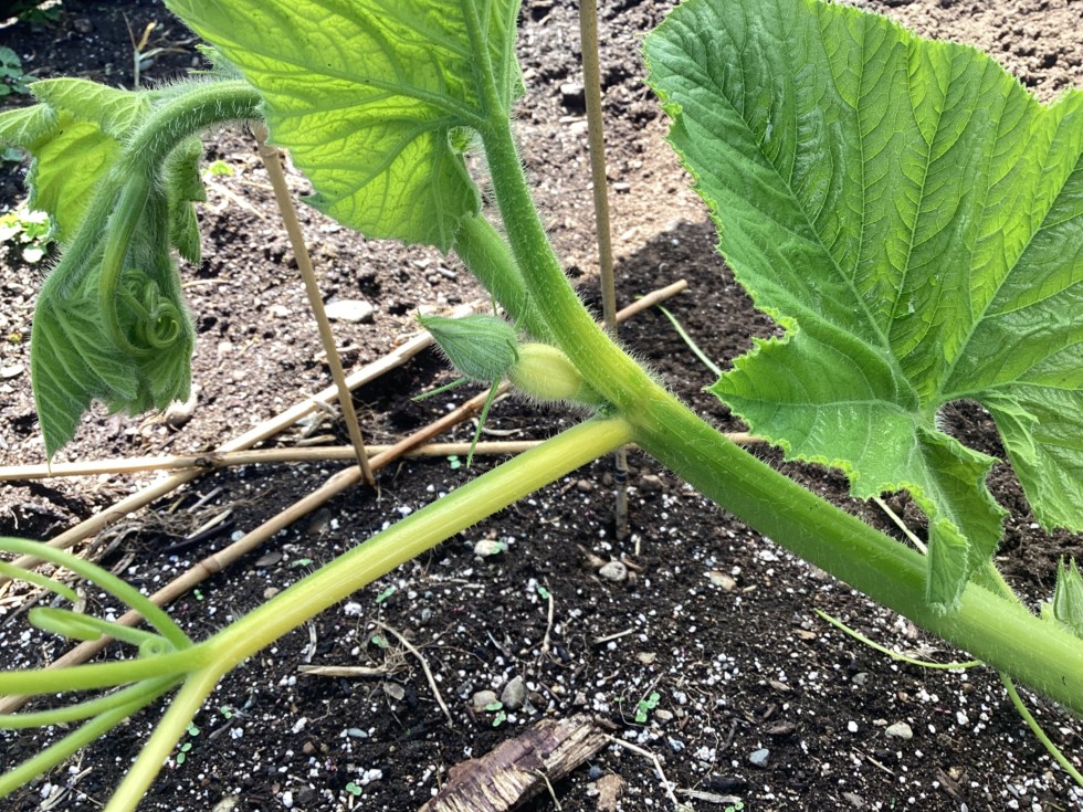 18 or 19 feet out on the main vine and 12 secondaries on each side behind it, this baby will likely be ready in a week to 10 days. It will be a good sized plant at pollination with 15' secondaries.