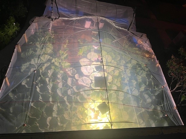 Not much room left to fill in the 2144 greenhouse plot. 6 DAP and backup pollination tomorrow.